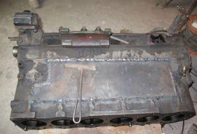 因碎裂太多,这是采用粘补焊接法焊补的汽车缸体